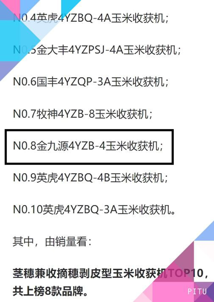 ? ? 據權威機構統計,2020年度中國莖穗兼收機銷量排行榜“金九源”榜上有名